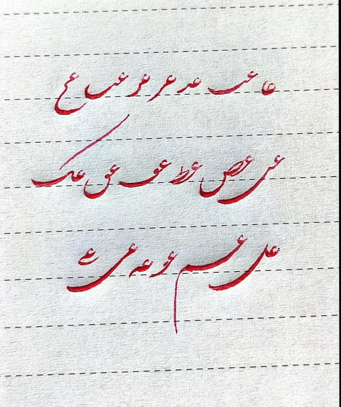 تمرین عملی: شامل تکنیک ضخامت نویسی،آموزش و یادگیری حروف ،اتصالات و کلمات مختلف و آموزشسطر